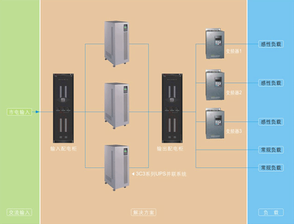 解決方案:城(chéng)堡系列3C3 UPS 可(kě)适應0.65超前~0.9滞後的(de)各種負載